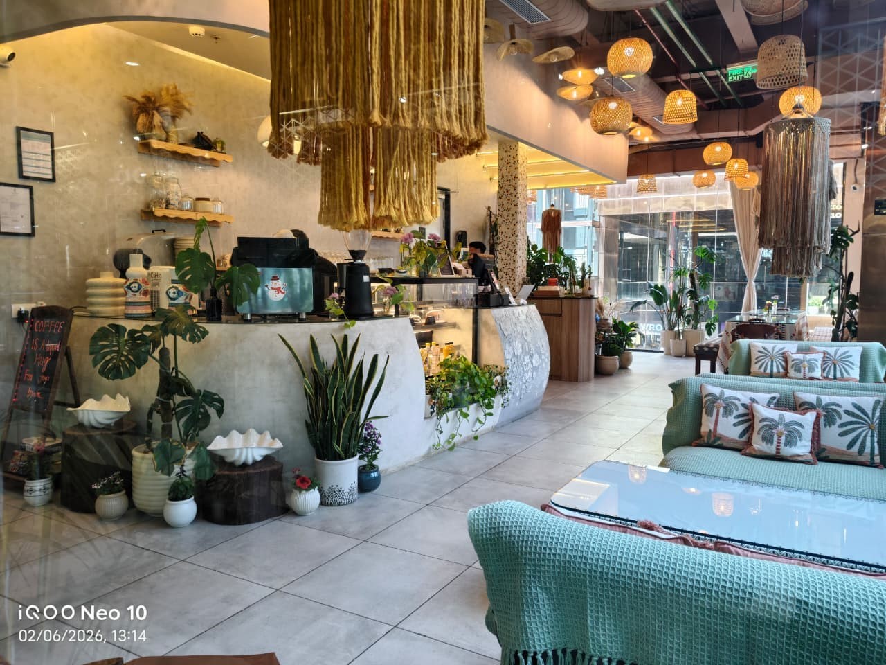 Set above the mall's serene lake, the cafe is housed in a striking hanging pod-style structure with a glass facade, allowing natural light to flood the space while offering panoramic views from every corner. With over 100 plants spread throughout, Lowkey feels like an urban oasis--bringing nature into a contemporary mall setting.